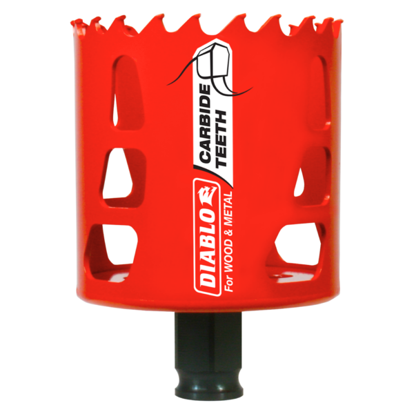 Diablo introduces Carbide Teeth Hole Saws, the first hole saws on the market to cut both wood and metal (wood, nail-embedded wood, plastic, aluminum, metal, cast iron, stainless steel and metal). Delivering up to 50X longer cutting life than bi-metal, these new carbide teeth hole saws offer faster cutting performance and increased productivity.