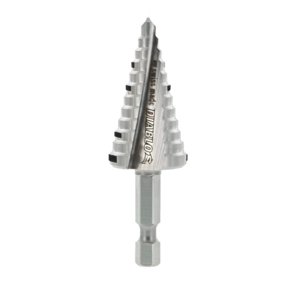 Diablo’s Impact Step Drill Bits bring exclusive technology to the Electrician, Plumber and HVAC contractor with fast, accurate cuts and increased stability in thin metals, PVC other plastic materials. The innovative Split Point Tip design enables a fast, on-point start resulting in increased durability and up to 6X longer life. An automated precision grinding process on each step reduces wear and delivers 2X faster cuts. Multiple hole sizes are made easy with laser etched step markings while increased step heights for common hole sizes makes drilling holes more efficient and faster. Designed with a ¼” hex shank, these bits are impact ready and can be used with drills and impact drivers.