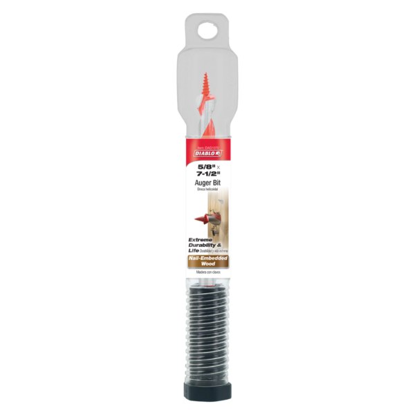 Diablo’s Auger Bit range provides maximum performance, extreme durability and superior life in nail-embedded wood applications. A two-step cutting action creates holes that are precise and clean. The self-feeding Dura-Tip™ pulls the bit while the dual cutting edge delivers an effortless, smooth drilling experience in wood with nails. Deep flutes enhance the chip evacuation process for more holes per charge. Quick change shank increases stability and durability in cordless and corded impact wrenches and drill drivers.